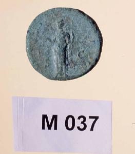 D/Illegibile\nTesta laureata di Adriano a destra\nR/Illegibile\nMoneta stante con bilancia nella destra e asta nella sinistra S C