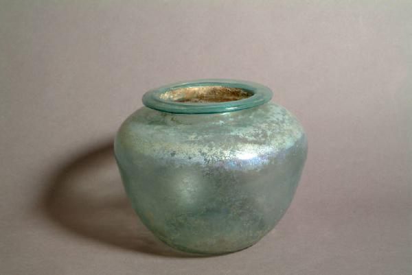 Orlo orizzontale, ripiegato a formare un cordoncino, breve gola, spalla arrotondata corpo ovoidale, base piana