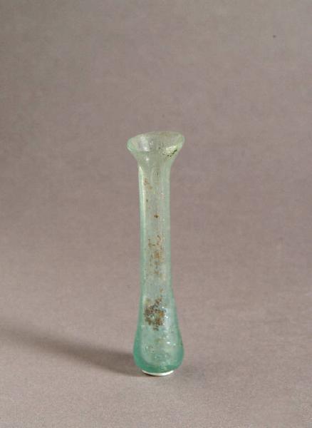 Orlo estroflesso, lungo collo cilindrico con leggera strozzatura all'attacco del corpo quasi cilindrico su base piana