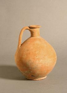 Orlo estroflesso ed appiattito, breve collo cilindrico; corpo ovoidale con piede a disco, ansa bicostolata impostata sulla spalla sale a sfiorare il bordo