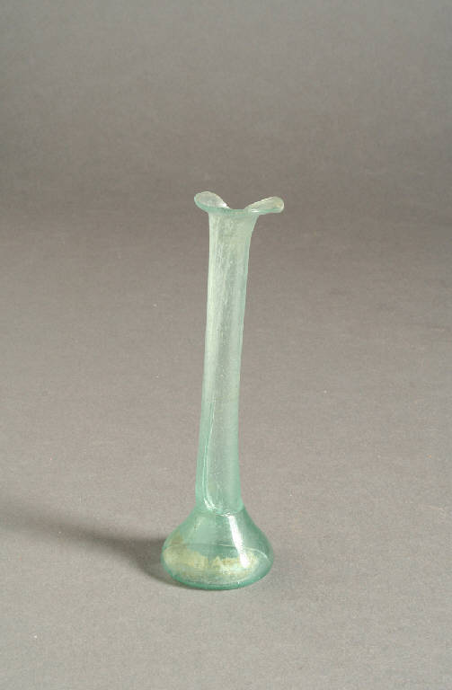 Orlo estroflesso e ripiegato, lungo collo cilindrico, corpo campaniforme schiacciato con strozzatura all'attacco del collo