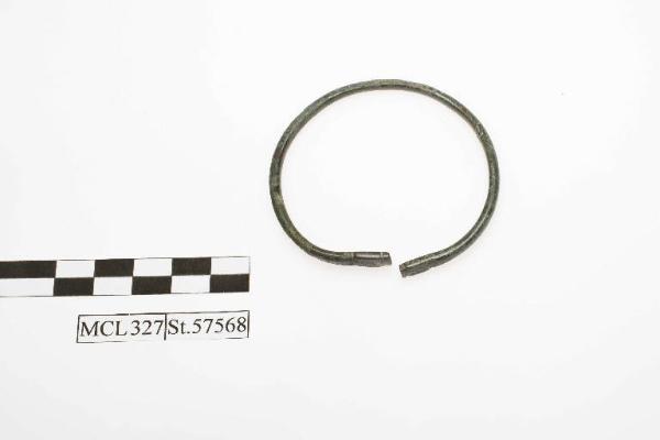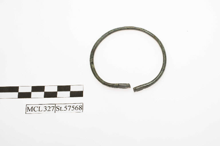 Armilla in bronzo a testa di serpente, sezione circolare.
