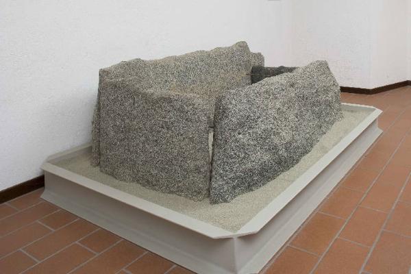 Struttura tombale costituita da quattro grandi lastre di pietra poste di taglio a definire uno spazio rettangolare; fondo in cocciopesto. Sepoltura a deposizione plurima.