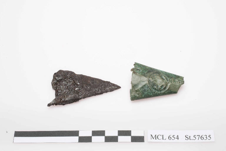Lama in ferro di cui si conserva solo la punta, relativa probabilmente ad un'arma da taglio di medie dimensioni.
