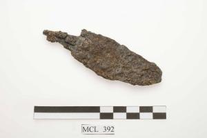 Coltello in ferro di forma ovale a un taglio con piccolo codolo a sezione quadrangolare.
