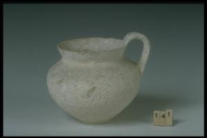 Labbro ad imbuto, corpo biconico, piede ad anello, ansa a nastro sormontante.