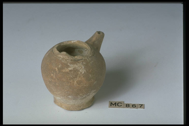 Corpo globulare, versatoio conico, piede troncoconico.