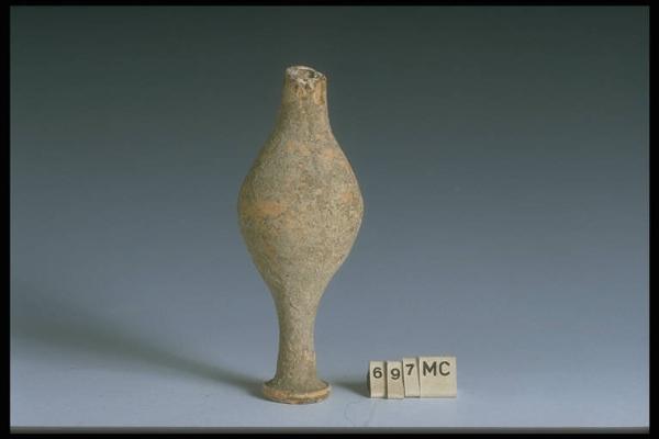 Corpo globulare dalle pareti spesse; piede dal lungo fusto sottile e legg. svasato in fondo; base aggettante ad anello schiacciato, con il bordo superiore legg. rialzato