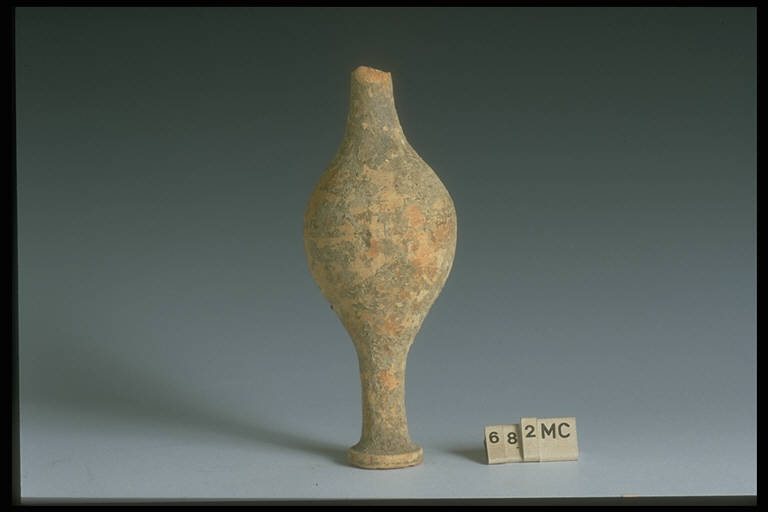 Lungo collo sottile tubolare; corpo globulare; piede dal lungo fusto sottile; base espansa ad anello, fondo pieno legg. concavo