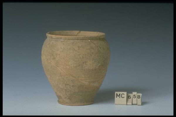 Imboccatura dal labbro verticale e svasato ad imbuto; gola di raccordo col corpo; corpo piriforme, a parete espansa rastremantesi in basso ove assume un andamento obliquo; piede echiniforme, basso, aggettante; fondo pieno e piatto