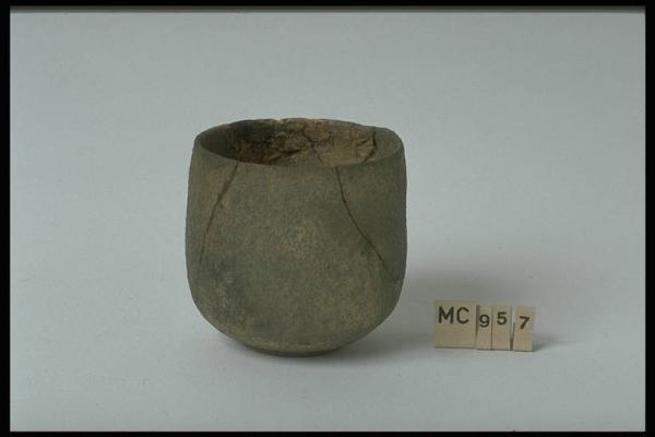 Vasca a pareti sottili pressoché rettilinee, legg. rientranti all'imbocc.; nel tratto finale, carenatura arrotondata, sotto la quale il profilo si fa obliquo; apoda: base piana, schiacciata legg. al centro