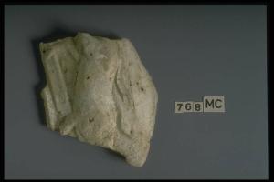 Frammento di lastra a sezione rettangolare con cornice piatta sul bordo superiore ed inferiore, nel campo resta il corpo molto allungato di un animale (pantera ?)