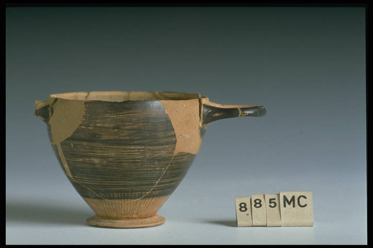 Skyphos di forma corinzia con raggera alla base della vasca.