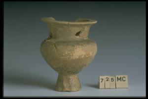 Piede troncoconico, corpo ovoidale rastremato, collo cilindrico, labbro piatto aggettante.