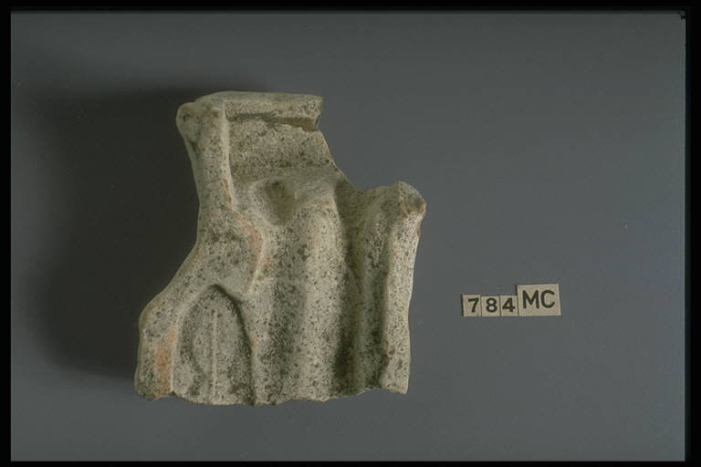 Parte inferiore di figura panneggiata stante su base parallelepipeda.