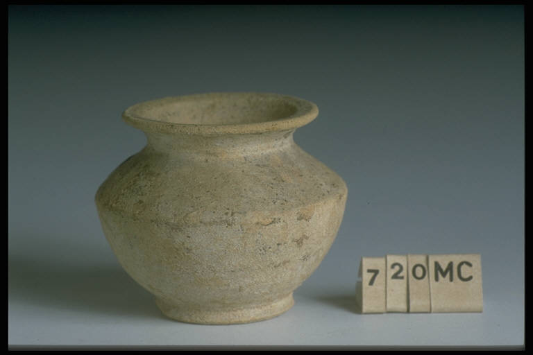 Labbro piatto estroflesso, collo a profilo concavo, corpo globulare con spalla carenata, piede troncoconico