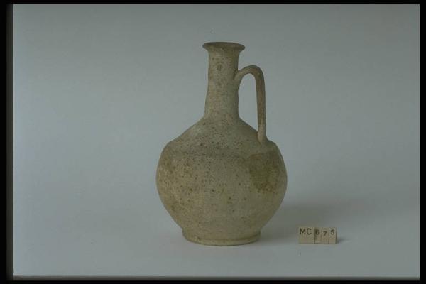 Labbro estroflesso, collo cilindrico, spalla a tesa obliqua, corpo carenato, piede a disco, ansa a bastoncello.