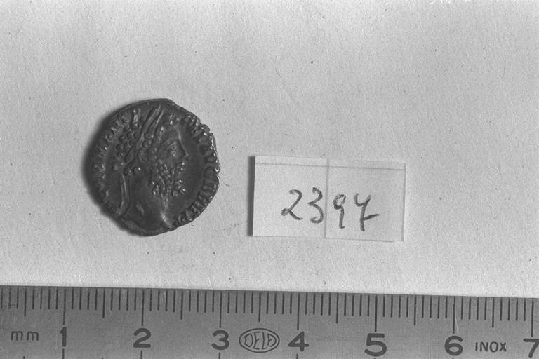 Recto: Testa laureata di Commodo, a destra . Contorno di perline.\nVerso: Libertas, drappeggiata, stante di fronte, rivolta a sinistra, con pileus nella destra e vindicta nella sinistra. Contorno di perline.