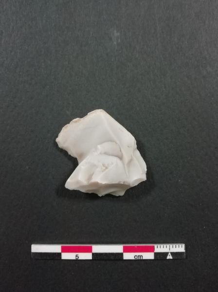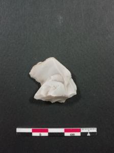 Denticolato (D1) su scheggia in selce bianca con cortice. Ritocco semplice marginale diretto a formare un incavo sul lato sinistro.