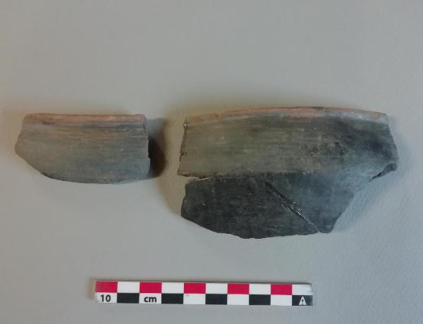 Tre frammenti pertinenti all'orlo estroflesso leggermente arrotondato di una ciotola in impasto semifine lisciata.