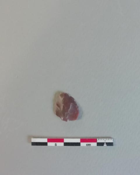 Grattatoio denticolato (D4) su scheggia in selce violetta. Ritocco semplice inverso lungo il lato sinistro, semplice diretto lungo il lato destro.