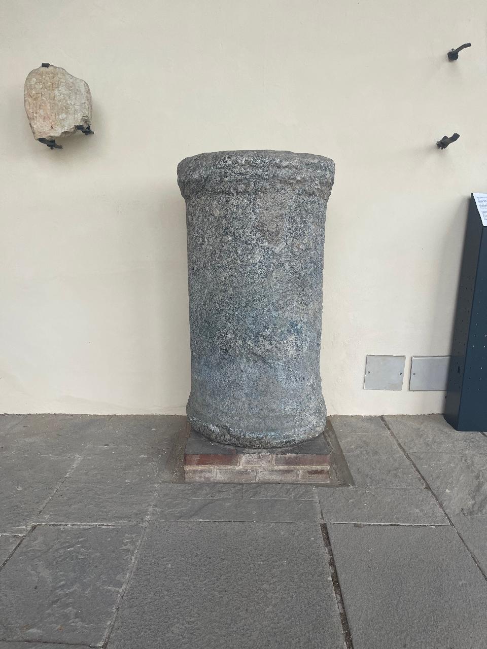 Il reperto proviene da Strada Nuova, angolo Via Mentana. Le are cilindriche erano utilizzate per l'accensione di fuochi. Le ridotte dimensioni suggeriscono che si trattasse di un rito incruento, senza l'uccisione di vittime.