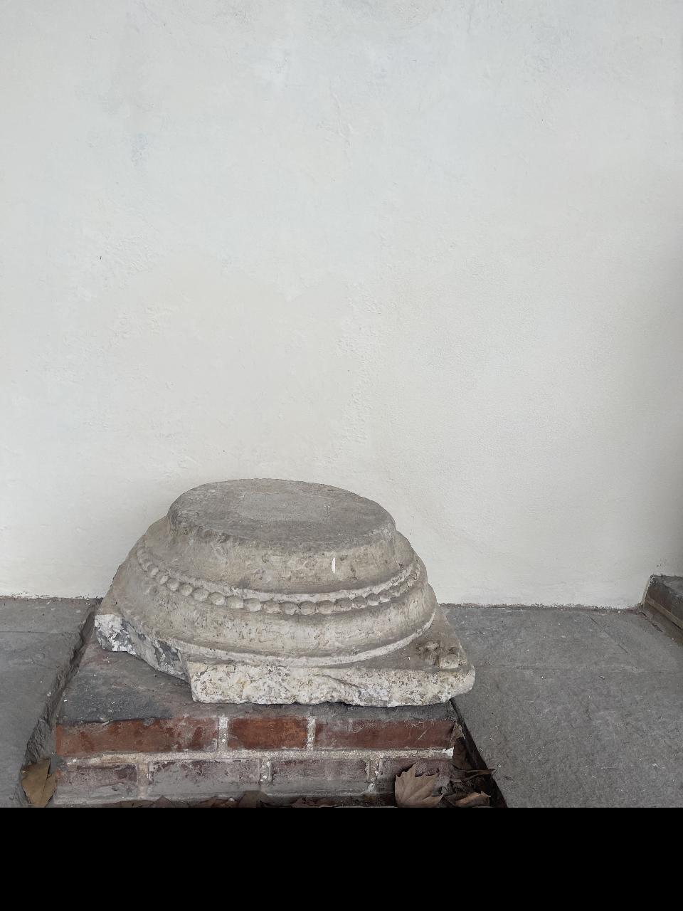 Il reperto è esposto alla rovescia e proviene dalle antiche cattedrali di Pavia. L'ordine tuscanico era una variante etrusca dell'ordine greco, diffuso in epoca romana. In questo esemplare l'abaco è separato dall'echino da un collare di perline bombate.