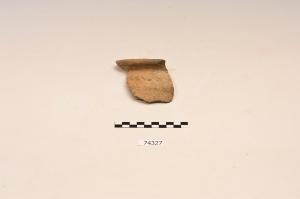 Olla tipo VIIg.\nOlla ovoide con orlo estroflesso a sezione rettangolare. Rigature da tornio su entrambe le superfici.\nInvetriatura a chiazze sulla parete esterna e sull'orlo.