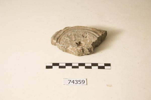 Fondo di piccole dimensioni che, per tipologia della parete residua connessa, rimandano genericamente ai tipi dal IV al X.\nSolitamente piani, presentano l'esterno lavorato a colpi più o meno regolari e l'interno in parte tornito e in parte sbozzato.\nIn questo elemento, anche l'esterno è parzialmente tornito e presenta al centro una cavità più evidente delle altre, lasciata dalla punta del tornio.