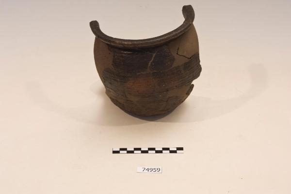 Olla, Tipo IV, variante b.\nCorpo ovoide su fondo piano.\nOrlo estroflesso a sezione rettangolare superiormente piatto o appena obliquo verso l'interno. Il labbro può essere più squadrato o più arrotondato.\nFondo di Tipo C: fondo piano di discreto spessore che si assottiglia verso il centro.