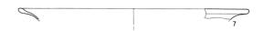 Orlo di grosse dimensioni, con bordo spesso e ingrossato verso l'interno, forse appartenuto ad un piatto o ad un'ampia coppa a corpo emisferico.
