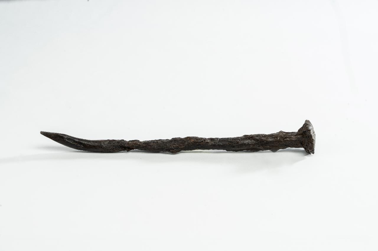 Chiodo con testa quadrangolare e stelo a sezione circolare.
