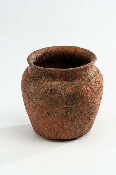 Olla in ceramica comune con orlo a fascia, collo concavo e corpo basso ed espanso.