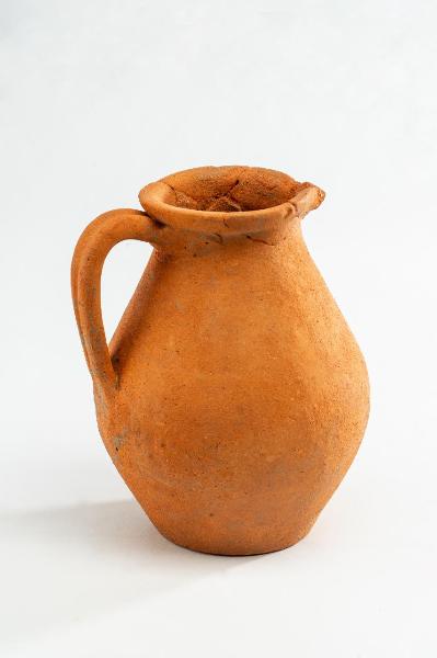 Brocca con beccuccio-versatoio e corpo ovoide, ansa a nastro a sezione ovale impostata verticalmente dal collo alla spalla. Beccuccio triangolare impostato sul labbro.