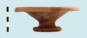 piattello su alto piede a margine superiore rilevato, vasca circolare poco profonda con larga tesa.