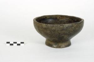 Orlo indistinto arrotondato, labbro leggeremente rientrante a spigolo vivo, vasca emisferica schiacciata, basso piede svasato.