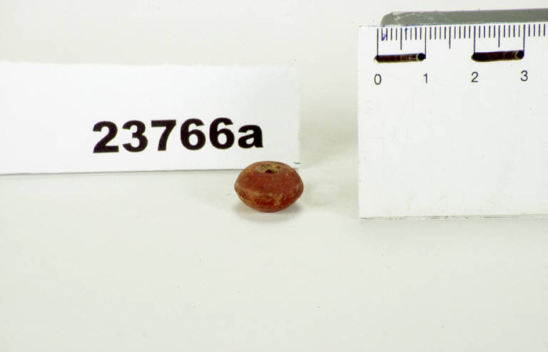 Vago in ambra di forma biconica, con foro passante al centro.