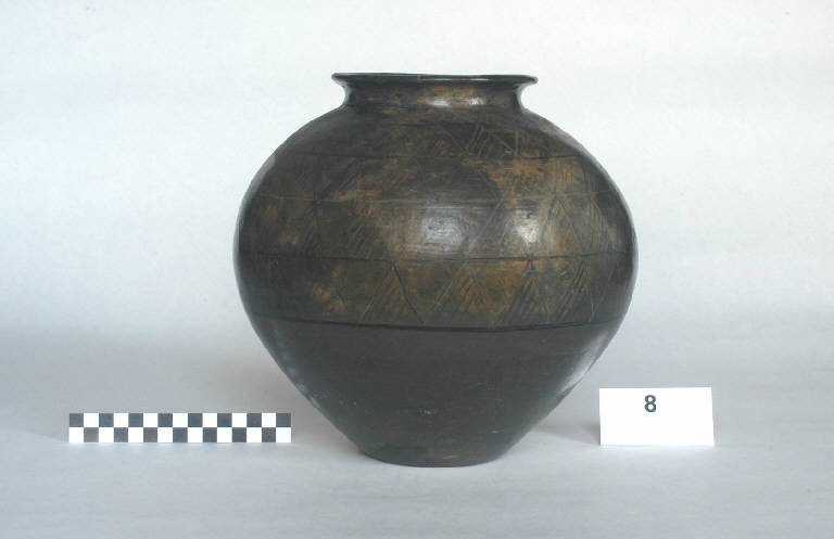 urna globulare a spalla alta decorata a stralucido