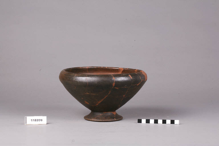 Ciotola a ampia vasca a calotta con orlo rientrante, basso piede svasato