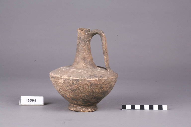 Olpe a trottola con collarino e alto collo sottile e spezzato.