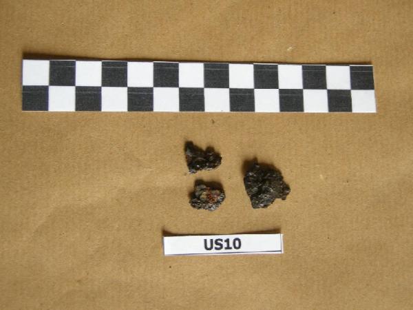 Tre piccoli frammenti ferrosi probabilmente esposti al calore del fuoco.