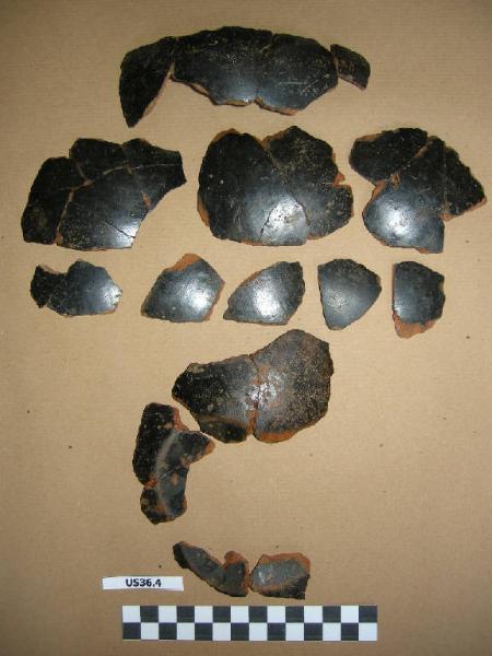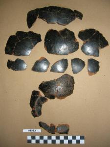 Frammenti riferibili ad un recipiente non identificabile (ciotola?), oppure ad una ciotola ed al fondo di un'urna: sei frammenti di fondo sono esternamente decorati a stralucido con un probabile motivo a croce di Sant'Andrea .
