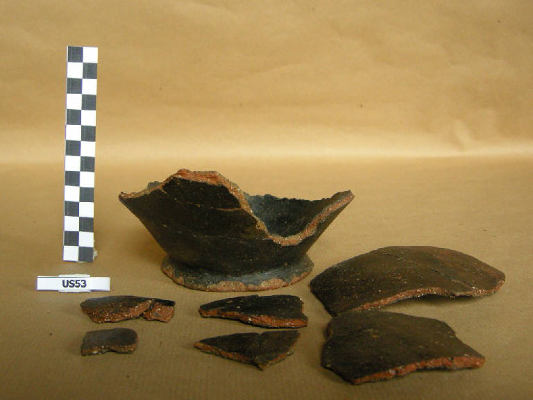 Ciotola a vasca troncoconica, labbro rientrante, fondo piano profilato.