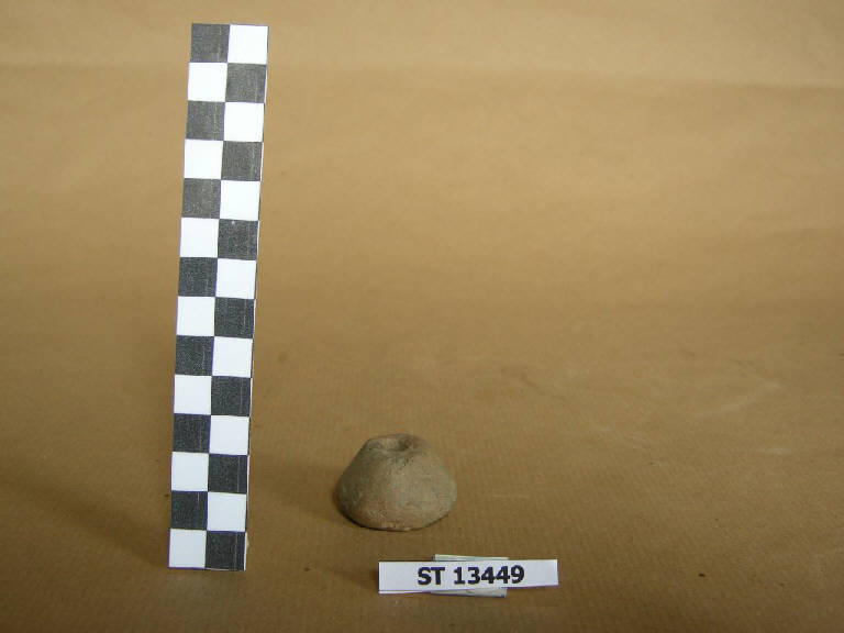 Fusaiola troncoconica a spigoli arrotondati; superficie rossastra.