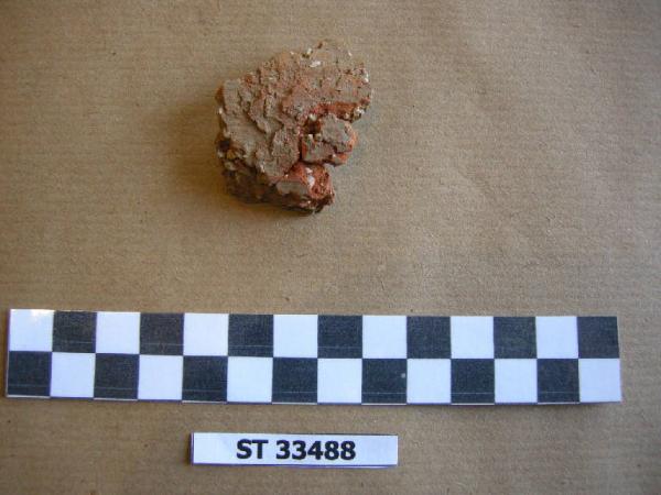Frammento di parete in ceramica di impasto grossolano arancione, con grossi inclusi litici, pertinente probabilmente ad un'olla o altra forma chiusa, di uso domestico.