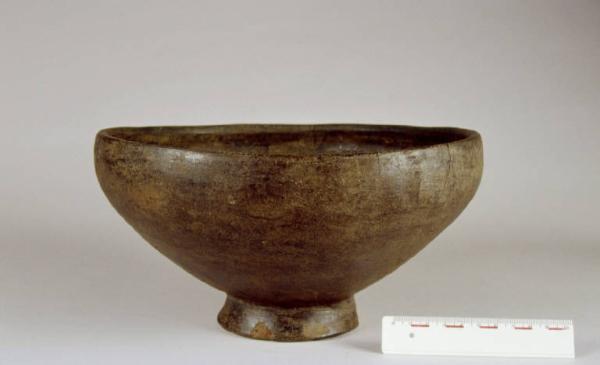 Ciotola con labbro leggermente rientrante, basso piede campanulato e fondo concavo