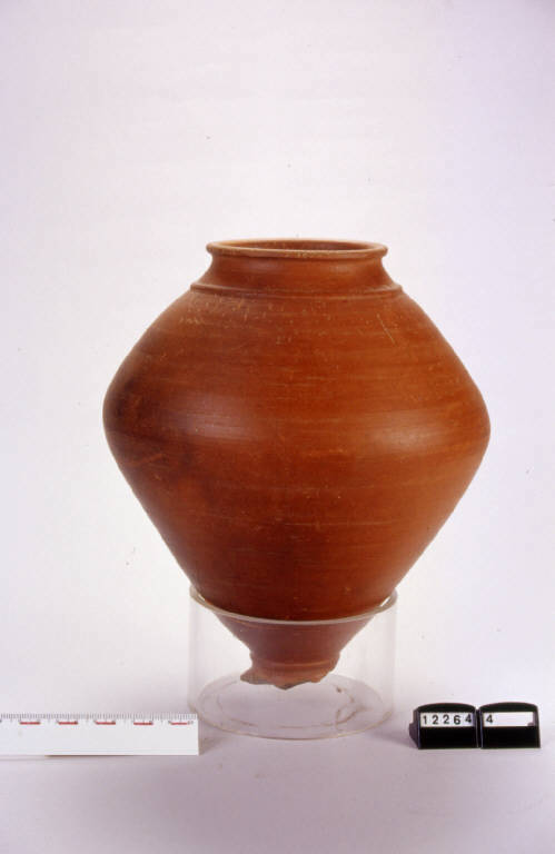 Vaso biconico con labbro leggermente estroflesso e piede svasato.