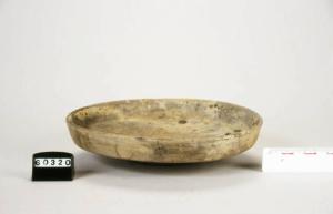 Patera a vernice nera, pareti dritte e leggermente inclinate verso l' alto, orlo verticale e piede troncoconico con spigolo esterno.