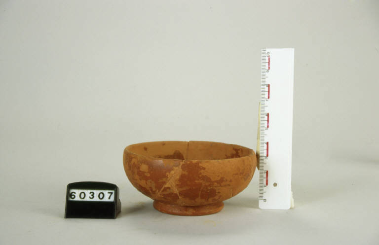 Orlo arrotondato indistinto, vasca emisferica, piede ad anello