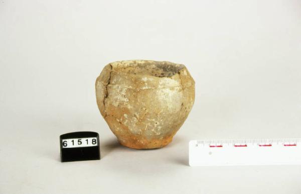 Olletta di forma ovoide, orlo diritto, fondo piano.